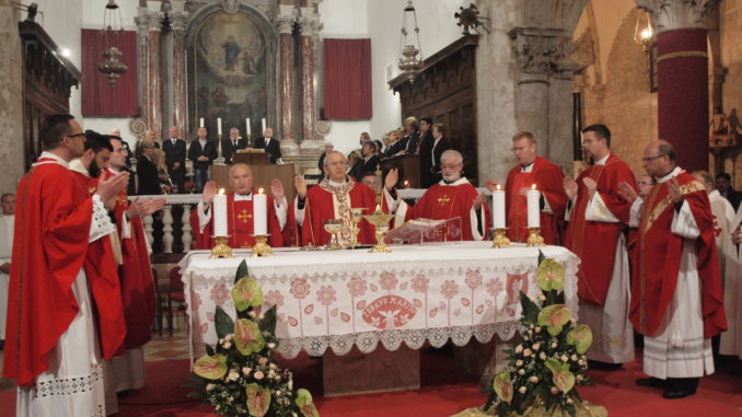Misu Večere Gospodnje na spomen ustanovljenja svete euharistije i svećeništva na Veliki četvrtak 18. travnja u katedrali sv. Stošije u …