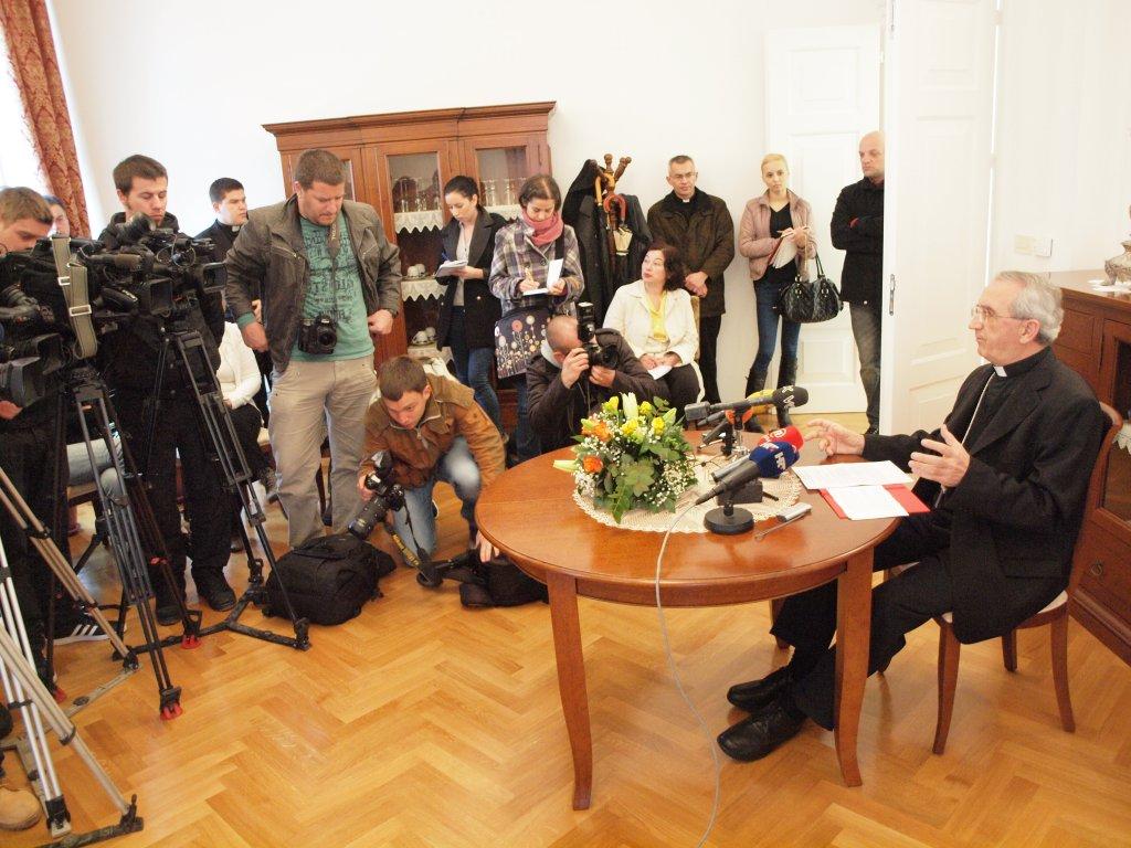 Predsjednik HBK, zadarski nadbiskup Želimir Puljić, na konferenciji za novinare u četvrtak 14. ožujka povodom izbora pape Franje, zahvalio je medijima na praćenju tog velikog događaja. Kao kardinala Jorge Mario Bergoglia, mons. Puljić ga je susreo i slušao njegove intervente na Sinodi biskupa 2001. g. na kojoj se raspravljalo o biskupskoj službi, a kardinal Bueonos Airesa bio je glavni predavač. „Izbor je uistinu mističan, otajstven ali i javan. Osim medijskog događaja, osjetili smo da ima nešto izvan toga. Dok se iščekivao bijeli dim, galeb se popeo na dimnjak i tu se zadržao, ponašao se bezbrižno. I to mi je bio govor, kao da je nestrpljivom narodu htio reći ‘Stvar je gotova. Samo se malo strpite i ne brinite. Papa je tu.’ Čini mi se da je i to govor prirode, umrežen u ovaj važan događaj za Crkvu i cijeli svijet. Sikstinska kapela je bila zatvorena za javnost, ali otvorena nebu i Duhu Svetome. Radosni smo da smo doživjeli plod tog intimnog, mističnog i važnog događaja za Crkvu i svijet. Zahvaljujemo Bogu i brojnim moliteljima koji su od odlaska Benedikta XVI. do izbora pape Franje žarko i uporno molili“ rekao je mons. Puljić. To što papa nije iz Europe iako je talijanskih korijena, smatra velikim pomakom. „U Crkvi nema stranaca. U Crkvi nema kontinenata. To je pozitivan korak i iznenađenje. I prvi je papa isusovac. Čitam u tome veliki znak. Isusovci koji su osobito vezani uz službu apostola Petra ovime su nagrađeni. Jedan od isusovaca preuzima službu apostola Petra“. O postupcima pape Franje koji su nepredviđeni uobičajenim protokolom mons. Puljić je rekao: „To je dobro. Nije to loše, gdje nešto ne mora biti baš tako. Oduševljen sam njegovim stavom i stilom, pogotovo što dolazi s drugog kontinenta. Donosi sa sobom iznenađenja i mislim da to donosi novost i u samoj Crkvi. Promijenio je mjesto, ime, ali nije promijenio sebe. Ostat će i dalje pastir kojem je stalo najviše do ljudi, radi čega je i postao pastir i papa“.