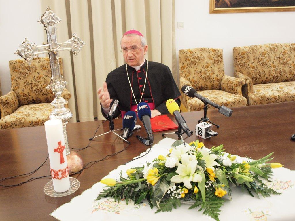 I dok ovozemaljskim velikanima sve uglavnom s grobom završava, Isusovo pravo doba kod groba započinje. Istina dok smo u Velikom tjednu slušali izvješća o Kristovom stradanju, čudili smo se i pitali zašto je Bog pripustio strašnu muku i umiranje svoga Sina?! Uskrs međutim pokazuje kako Bog ima zadnju riječ. Po Uskrsu je zasjala pobjeda istine nad tamom i lažima, te pobjeda ljubavi nad zloćom. Orkestralnu svečanost uskrsne liturgije čine pjesma i molitva, ispovijed i euharistija. Dok nam u ušima zvone riječi prijekora: ‘Puče moj, što učini Tebi’, na uskrsnoj liturgiji čuje se govor satnika koji ispovijeda kako je Isus bio ‘zaista Sin Božji’. Otac nebeski, naime, poslao ga je u svijet biti blagovjesnikom siromasima, na slobodu pustiti potlačene, liječiti srca slomljena, i donijeti utjehu izranjenim ljudima (usp. Lk 4, 18 -19). Zbog toga svake nedjelje žurimo ususret Kristu nahraniti se tijelom njegovim. Jer, nedjeljno slavlje otvara nam rajska, a misna pretvorba biva predokusom Božjeg Kraljevstva i navještaj njegova konačnog dolaska: Tvoju smrt, Gospodine, naviještamo, tvoje uskrsnuće slavimo, tvoj slavni dolazak iščekujemo! Dođi, Gospodine Isuse! Dođi i blagoslovi naše obitelji, naš Grad i Nadbiskupiju. Neka tvojim dolaskom bude sve blagoslovljeno.