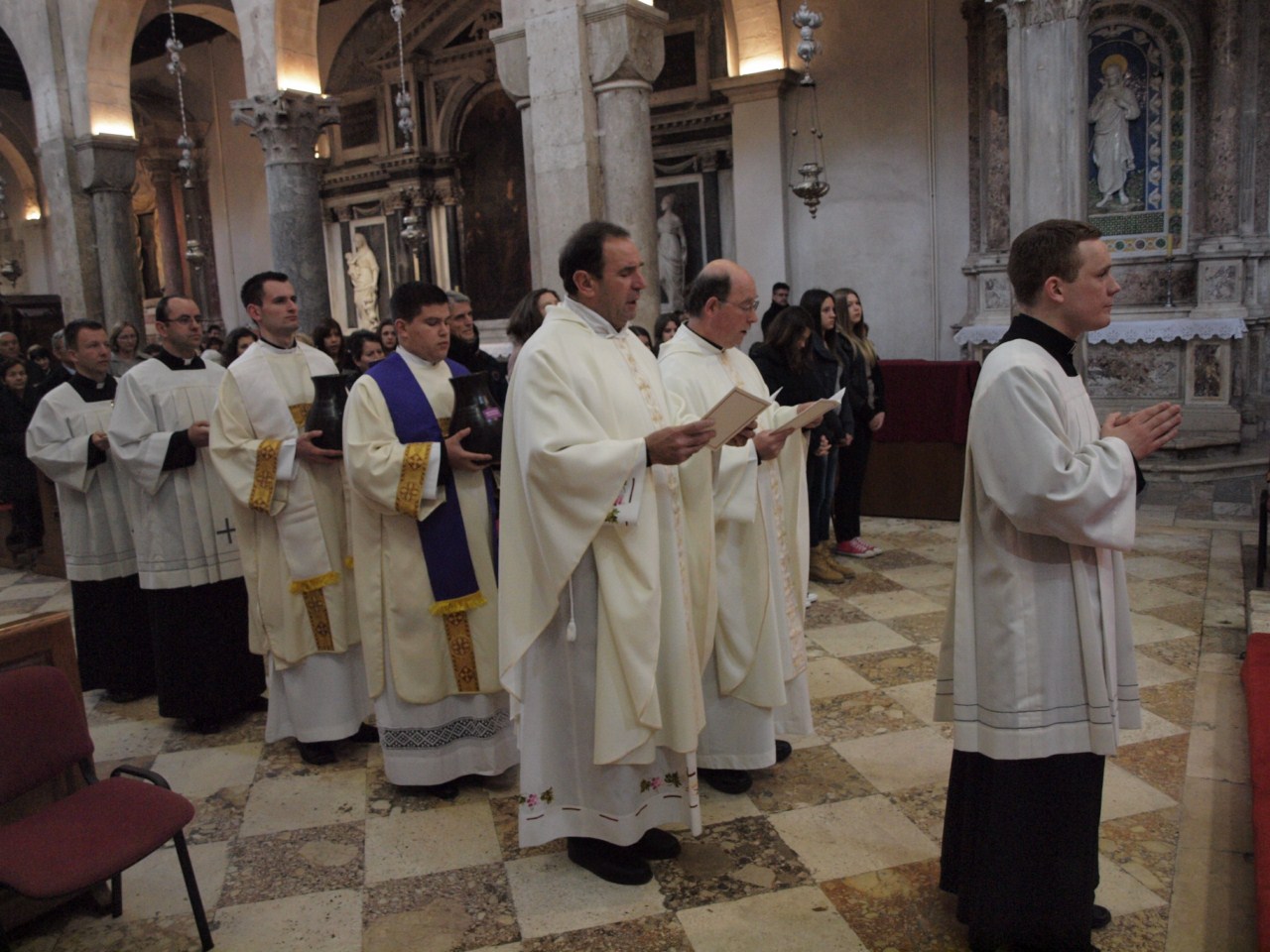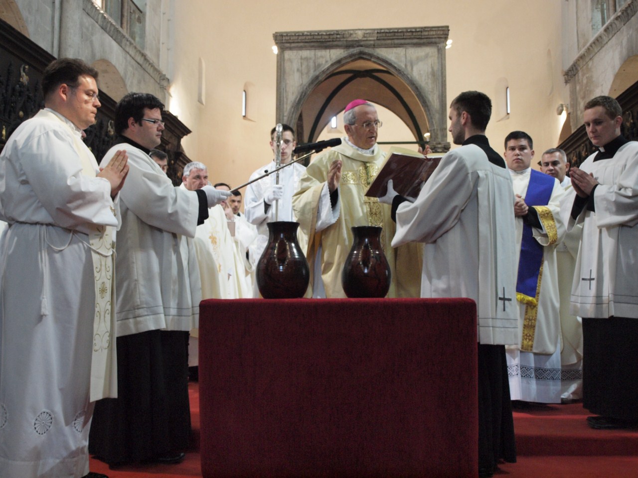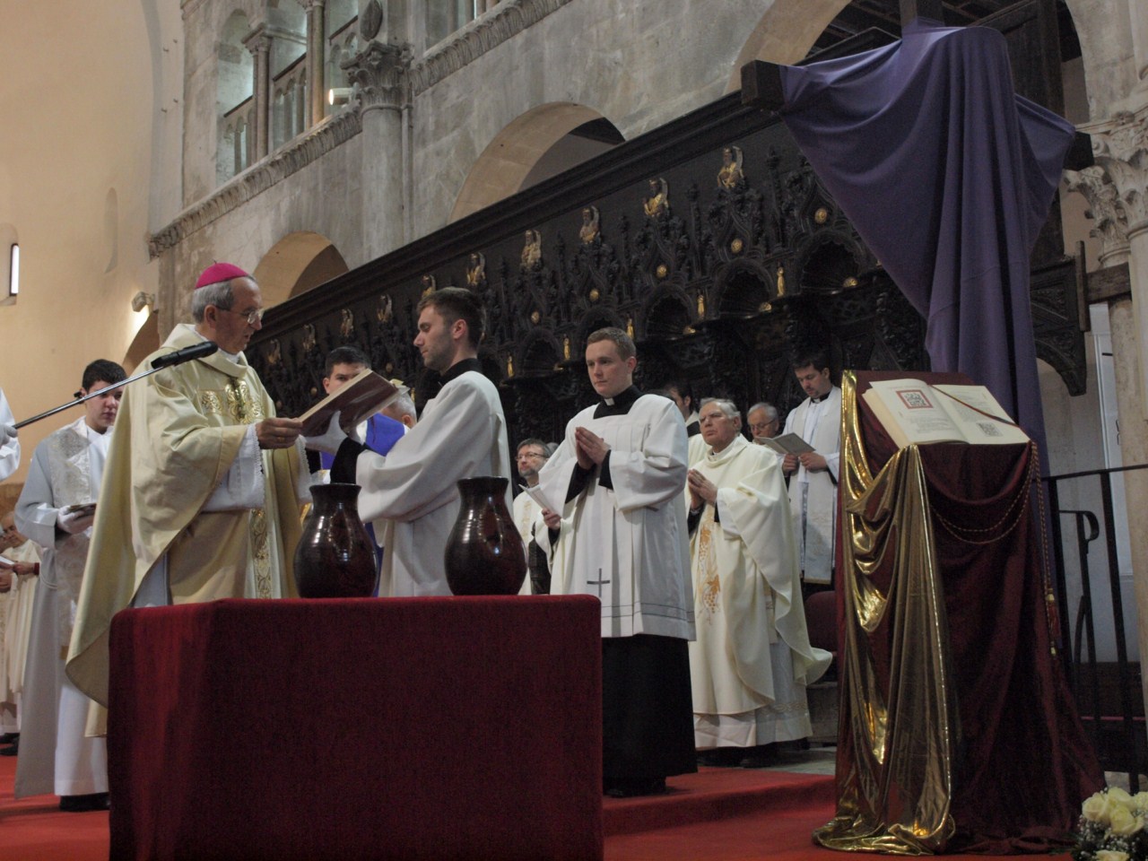 Misu posvete ulja na Veliki četvrtak 28. ožujka u katedrali sv. Stošije u Zadru predvodio je zadarski nadbiskup Želimir Puljić, kad je posvetio sveta ulja za slavljenje sakramenata. U misi su svi svećenici koji djeluju u nadbiskupiji obnovili svoja svećenička obećanja, a sudjelovali su i krizmanici, poput mladih koji su došli s otočnih Sali, katekumeni, vjeroučitelji i župni suradnici. Liturgija Posvete ulja je sjećanje na dan rođenja euharistije i svećeničkog rođendana.