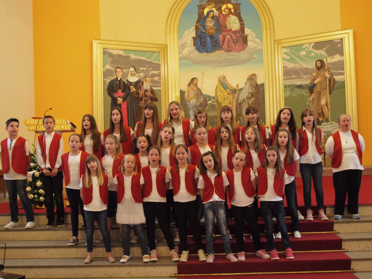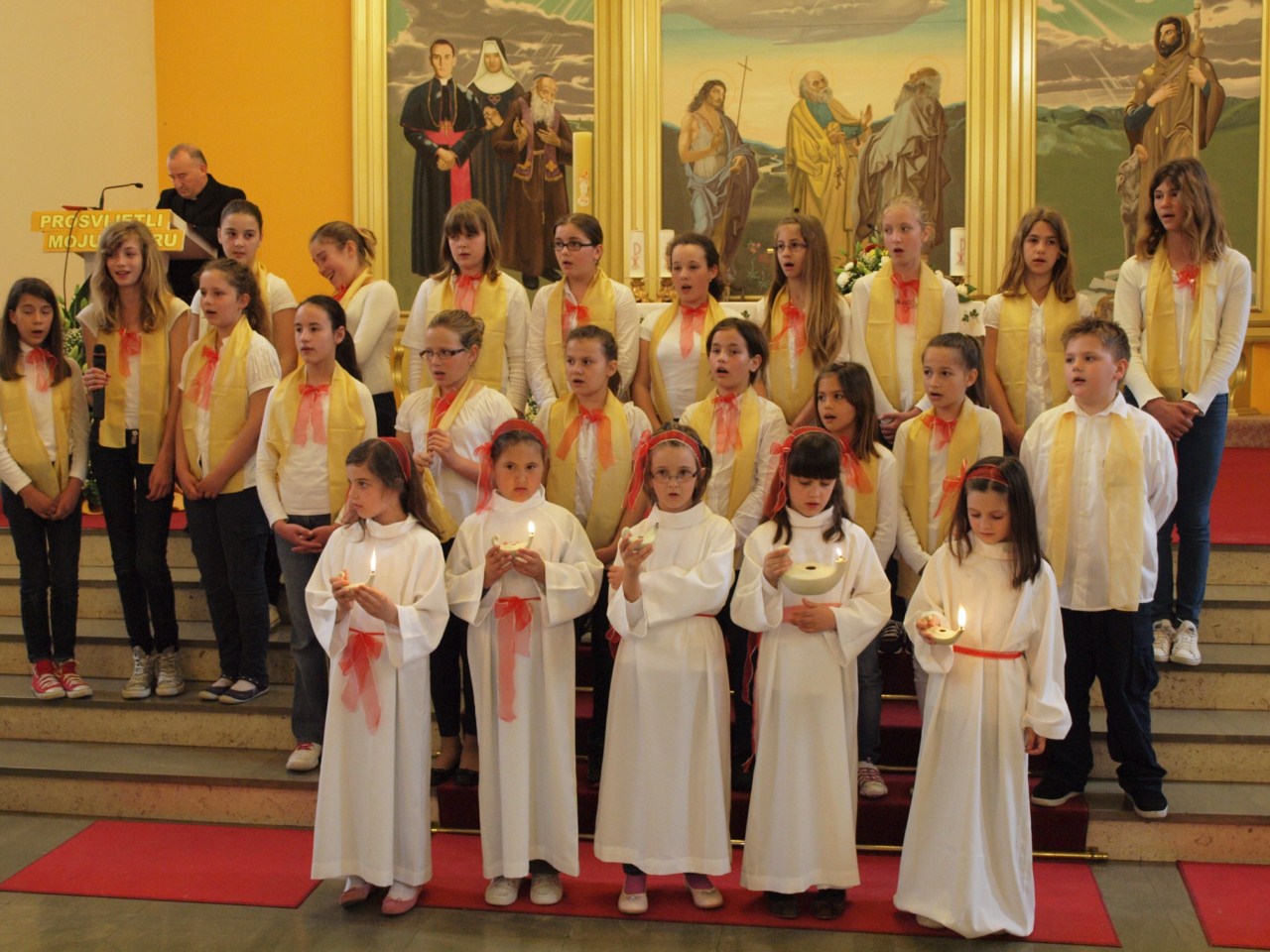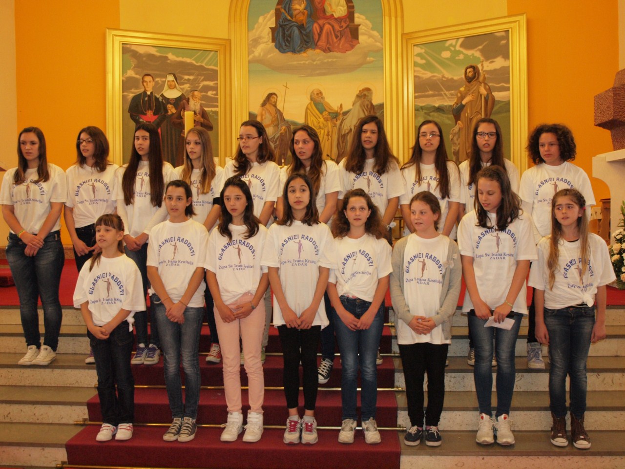Nakon misnog slavlja koje je predvodio don Gašpar Dodić, predstojnik Katehetskog ureda Zadarske nadbiskupije, s dvije pjesme o temi ‘Prosvijetli moju vjeru’ nastupili su sljedeći zborovi: sv. Roko iz Bibinja izveo je pjesme ‘Tebi vjerujem’ i ‘U onaj dan’, s voditeljicom s. Svjetlanom Parat; Uznesenje BDM iz Zadra, pjesme ‘Neka u vama ostane’ i ‘Marijo, uzor vjernice’ (s. Rozarija Ćurić), Radost i nada iz Biograda, ‘U onaj dan’ i ‘U malom zrnu pšenice’ (s. Anka Špralja), zbor sv. Marcele iz Nina, ‘Pun vjere stoj’ i ‘Zapali svjetlo svojim životom’ (s. Krešimira Zanki), Anđeli bez krila iz Paga, ‘Isuse mili’ i ‘Tebi Isuse vjerujem’ (Anthony Buljanović i Sanja Dobrijević), Marijini prijatelji iz Zemunika, ‘Isus Krist je slika Božja’ i ‘Vjerujem ti moj Gospodine’ (s. Vladislava Terzić i don Zdenko Dundović), Antini slavuji sa Smiljevca u Zadru, ‘Vjerujem u Boga svog’ i ‘Vjerujem tebi Stvoritelju svijeta’ (s. Antonela Malenica i Ivana Knežić), Glasnici radosti s Relje u Zadru, pjesme ‘O Kruše živi milosni’ i ‘Tu smo Kriste’ (s. Agneta Đerek), Srce Isusovo s Voštarnice u Zadru, ‘Isuse mili’ i ‘Umnoži nam vjeru’ (s. Kristijana Ajduković), sv. Petar s Ploča u Zadru, ‘U onaj dan’ i ‘Vodi me’ (Ana Kolanović).