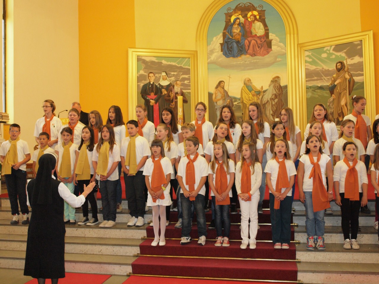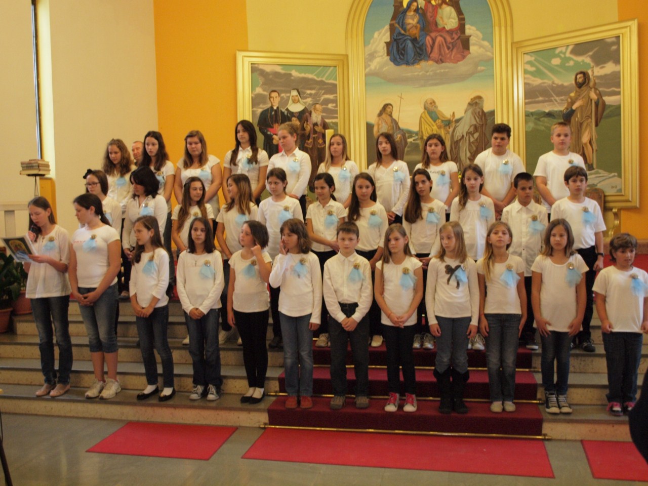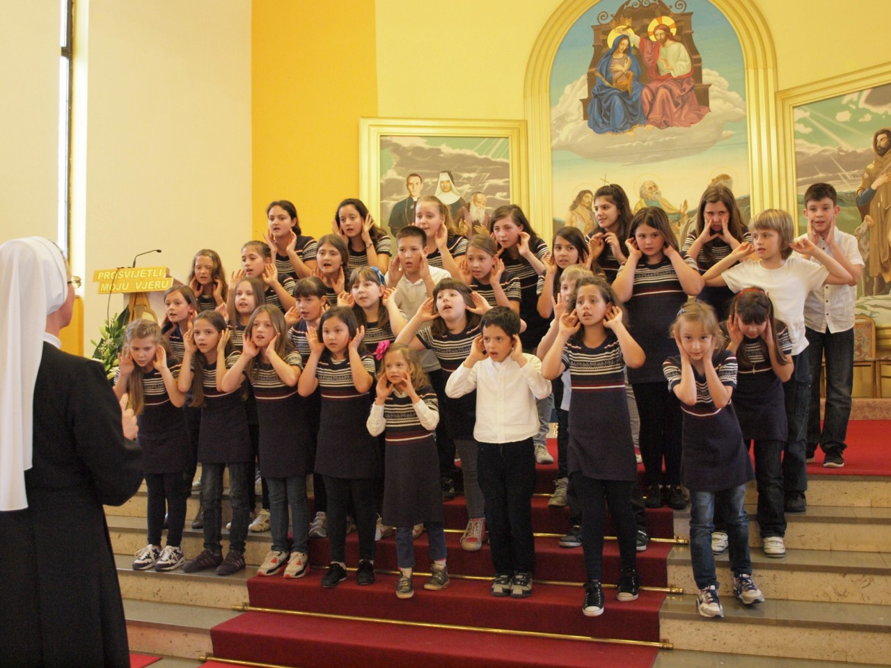 Nakon misnog slavlja koje je predvodio don Gašpar Dodić, predstojnik Katehetskog ureda Zadarske nadbiskupije, s dvije pjesme o temi ‘Prosvijetli moju vjeru’ nastupili su sljedeći zborovi: sv. Roko iz Bibinja izveo je pjesme ‘Tebi vjerujem’ i ‘U onaj dan’, s voditeljicom s. Svjetlanom Parat; Uznesenje BDM iz Zadra, pjesme ‘Neka u vama ostane’ i ‘Marijo, uzor vjernice’ (s. Rozarija Ćurić), Radost i nada iz Biograda, ‘U onaj dan’ i ‘U malom zrnu pšenice’ (s. Anka Špralja), zbor sv. Marcele iz Nina, ‘Pun vjere stoj’ i ‘Zapali svjetlo svojim životom’ (s. Krešimira Zanki), Anđeli bez krila iz Paga, ‘Isuse mili’ i ‘Tebi Isuse vjerujem’ (Anthony Buljanović i Sanja Dobrijević), Marijini prijatelji iz Zemunika, ‘Isus Krist je slika Božja’ i ‘Vjerujem ti moj Gospodine’ (s. Vladislava Terzić i don Zdenko Dundović), Antini slavuji sa Smiljevca u Zadru, ‘Vjerujem u Boga svog’ i ‘Vjerujem tebi Stvoritelju svijeta’ (s. Antonela Malenica i Ivana Knežić), Glasnici radosti s Relje u Zadru, pjesme ‘O Kruše živi milosni’ i ‘Tu smo Kriste’ (s. Agneta Đerek), Srce Isusovo s Voštarnice u Zadru, ‘Isuse mili’ i ‘Umnoži nam vjeru’ (s. Kristijana Ajduković), sv. Petar s Ploča u Zadru, ‘U onaj dan’ i ‘Vodi me’ (Ana Kolanović).