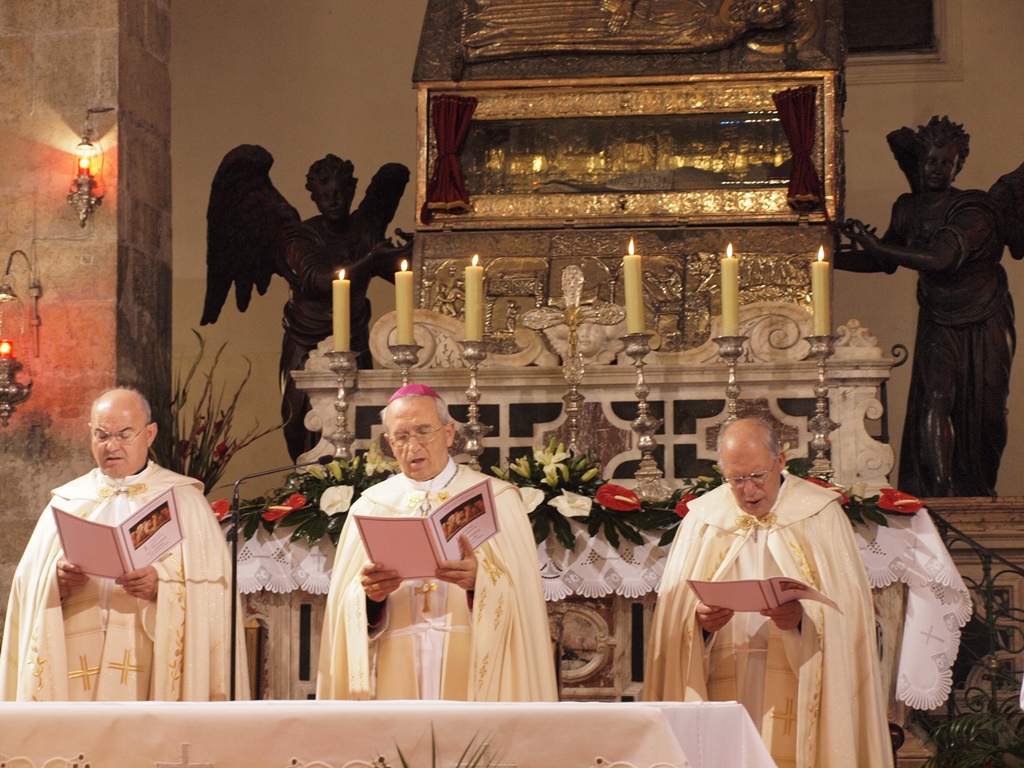 U osobi starca Šimuna i djeteta Isusa susreću se prošlost i budućnost, poručio je zadarski nadbiskup Želimir Puljić u homiliji Svečane Večernje koju je uoči blagdana sv. Šimuna, zaštitnika grada Zadra, predvodio u svetištu sv. Šimuna u Zadru u ponedjeljak 7. listopada. „Dok slavimo spomen svetoga Šime, prisjećamo se divnog dana kad je Bog, koga je Marija nosila u naručju, stigao među ljude. Na samom ulasku u jeruzalemski hram dočekuje ga starac Šimun koji pjeva svečani preludij novozavjetnoj liturgiji. Tu u Hramu, gdje je stiglo Sunce pravde koje će obasjati cijeli svijet, susreću se Stari i Novi zavjet. Povezuju se Betlehem i Jeruzalem. I dok je u Betlehemu Bog sišao k nama i postao stanovnikom zemlje, u Jeruzalemu gdje ga je Šimun primio u naručje, on će podnijeti muku, umrijeti i uskrsnuti“ rekao je mons. Puljić, istaknuvši da je Lukin evanđeoski prikaz bremenit značenjem i porukom. „Dok se redaju proroštva i događaji, susreću prošlost i budućnost, u sadašnjosti se da iščitavati sadržaj i cilj kršćanskog života. Svi smo na putu iz Betlehema u Jeruzalem, iz mjesta rođenja i prebivališta prema vječnoj domovini i nebeskom gradu. Liturgija nas poziva da s divljenjem i zahvalnošću gledamo što se događa u Hramu. Zbiva se objava spasenjskog djela po Kristu koji je svjetlo na prosvjetljenje naroda“ rekao je nadbiskup Puljić, istaknuvši sedamstoljetnu povezanost Zadrana sa sv. Šimunom.