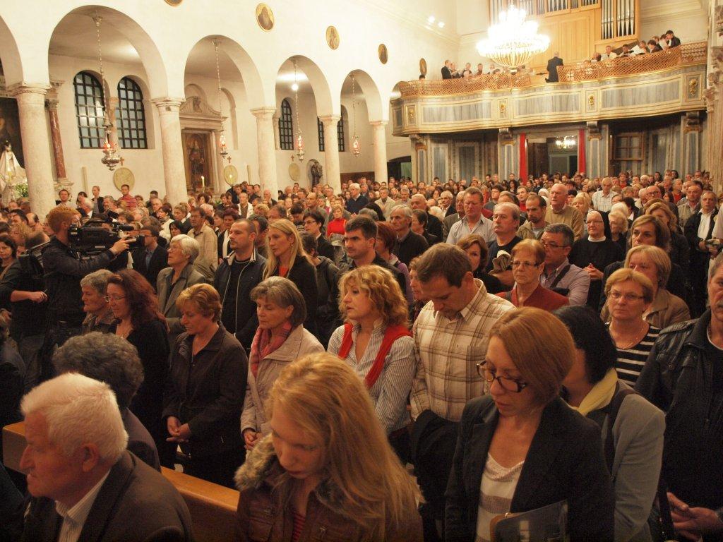 „Rekao sam nadbiskupu Puljiću da želim taj dan slaviti zajedno s vama u Zadru! Zajedno ćemo proslaviti 40 godina našeg svećeništva“ srdačno je i s osmijehom priopćio nuncij D’Errico, na što je svetištem odjeknuo veliki pljesak i radost već izražene dobrodošlice.