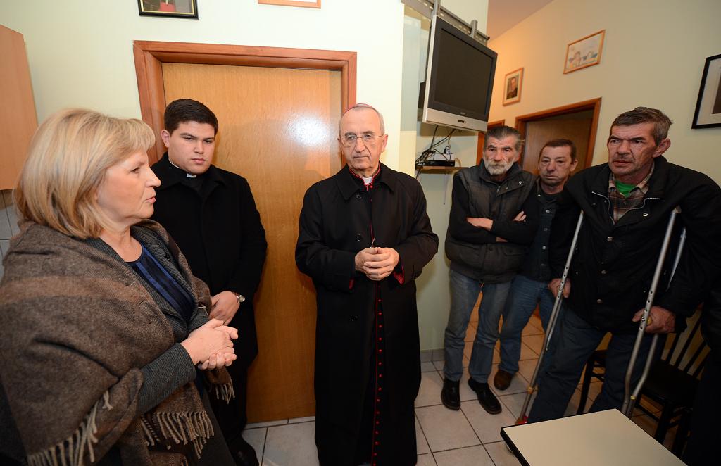 “Nemojte se umoriti činiti dobro! To je smisao mog pohoda: da vidim kako se radi i da potaknem djelatnike da se ne umore činiti dobro“ rekao je zadarski nadbiskup Želimir Puljić u susretu s djelatnicima Caritasa zadarske nadbiskupije koje je pohodio u petak 21. prosinca. Susreo je i korisnike Prenoćišta sv. Vinka Paulskog u kojem je 16 beskućnika. Djeca iz Male škole izvela su prigodni program, a prije ručka u Pučkoj kuhinji nadbiskup je, tradicionalno, susreo roditelje poginulih hrvatskih branitelja. “Drago mi je osjetiti da ste zbrinuti i vidjeti da imate najnužnije za život. Uvijek rado dolazim da podržim vas i djelatnike Caritasa koji se brinu za vas. Ovo je velika zasluga svih koji misle na potrebite. Živimo u društvu u kojem je sve više siromašnih i veliki je dar biti opskrbljen. U Zadru je pomoć za siromašne vrlo dobro organizirana. Brinući se za vas koji nemate dom, brinemo se i za riječi Krista kojima je pozvao ljude da jedni drugima budu blizu i imaju srca za potrebne“ rekao je mons. Puljić u Prenoćištu gdje je jedan korisnik i dragovoljac Domovinskog rata. Nikad nije tražio braniteljsku mirovinu jer se osjećao sposobnim za rad, ali mu država nije omogućila da živi od rada. Većina korisnika je tu od otvorenja prenoćišta. “Lijepo mi je doživjeti obiteljsku atmosferu u prenoćištu. Jedan korisnik kaže ‚Mi tu nemamo uobičajeno obiteljsko okruženje, ali trudimo se stvarati takvo okruženje, da pomažemo jedni drugima kad i što možemo’. Drago mi je to osjetiti. Caritas je institucija koja pokušava ne samo pomagati, nego i stvarati takvo okruženje ljubavi, razumijevanja i pomoći“ rekao je nadbiskup. Potaknuo je beskućnike da se u molitvi sjete nedavno preminulog korisnika Miroslava i svih koji su napustili ovaj svijet, a nema ih se tko spomenuti. Miroslav je bio dragi, vedar i komunikativan čovjek koji je prethodne dvije godine u ime beskućnika nadbiskupa prigodno pozdravio, pritom bi se i našalio i zahvalio. Za 17 djece u programu Male škole nadbiskup je rekao da djeca tu dolaze jer im treba pomoć u trenucima kad nemaju pomoć u obitelji. „Kad ona izostane u njihovim obiteljima, Caritas se trudi nadomjestiti im pažnju i ljubav koja im je potrebna“ rekao je nadbiskup istaknuvši i psihološku pomoć obiteljima s kojima se vode razgovori u službi Obiteljskog savjetovališta. Pohvalio je djelatnike i sve koji sudjeluju u karitativnom radu: Grad, Županiju, donatore i druge koji su zaslužni da Caritas funkcionira i čini dobro.