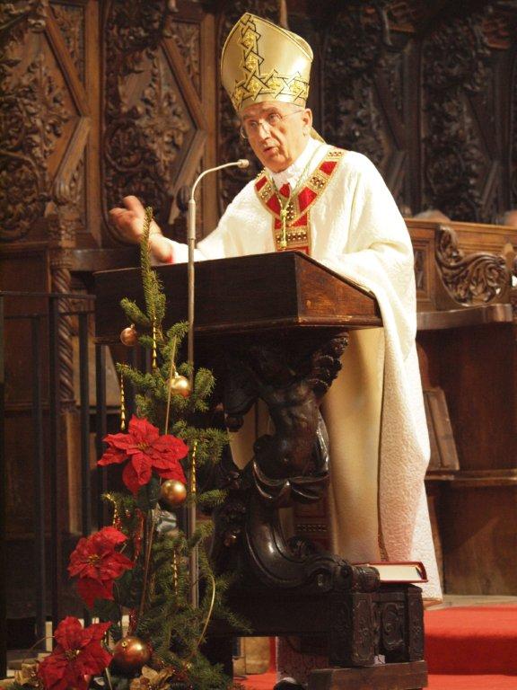 „Bog se utjelovio u ljudskoj povijesti jer je čovjeka volio i jer se raduje čovjeku. Kako je to lijepo i utješno čuti i doživjeti. Mogli bismo reći da je Bog poželio vidjeti čovjeka, biti mu blizu u njegovoj muci i patnji, pomoći mu u njegovom zemaljskom hodu. I odlučio je, nakon što je na više načina govorio ocima po prorocima, progovoriti u Sinu koga postavi baštinikom svega” rekao je nadbiskup. Bog nam je u svome Sinu priopćio plodove kreposti, obogatio nas je blagom svoje milosti, otkrio nam istinu i pozvao nas među baštinike vječnog života. Nadbiskup je poželio da božićni događaj ne shvatimo neispravno i da ga ne kitimo krivim ruhom. “Božić je, naime, blagdan siromaha, dan razbaštinjenih i napuštenih. Bog se i danas rađa u tolikim siromašnim predgrađima velikih metropola, u tolikim humanitarnim naseljima suvremenih prognanika za koje nema mjesta u mnogim gradovima i selima. Bog se i ove godine rađa u srcima ucviljenih, poniženih i ožalošćenih. Novorođeni je i danas blizu čovjeku patniku” istaknuo je mons. Puljić.