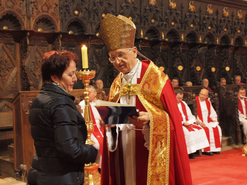 Nagrađeni su: Vojko Marčev, Molat; Rosanda Marketo, Brgulje; Ivan Erceg, Starigrad-Paklenica; Zdravka Stojić, Ljubač; Dragica Grgin, Ražanac; Milka Perić, Belafuža; Josip Šćapec, Plovanija; Šime Švanjek, Bokanjac; prof. Davor Motušić, Bili Brig; Zbor mladih Magnificat, Bibinje; Zdravko Peljušić, Debeljak; Joso Anić Medun, Kruševo; Ivanka Sremić, Obrovac; Mladen Zekan, Pridraga; Mate Pinčić, Zemunik; Zvjezdana Burčul, Galovac; Branka Vrsaljko, Nadin; Mirjana Kulaš, sv. Ivan Krstitelj, Biograd; Stojan Striguljica, Vrana; Njegovateljice ‘Centar za smještaj i rehabilitaciju’ sv. Filip i Jakov i Caritas Zadarske nadbiskupije, Zadar. U zahvali u ime nagrađenih, Mirjana Tadić, zamjenica ravnatelja zadarskog Caritasa, rekla je kako su ti ljudi svoju službu stavili na raspolaganje potrebnima hrabro svjedočeći vjeru. „Stošijin zagovor nas je ohrabrivao i punio naša srca da dobrim djelima svjedočimo i provodimo njenu želju pomaganja potrebnima. Kako je ona prkosila i pomagala zatočenim kršćanima, tako je i naša ljubav bila jača od svih nedaća koje su nam bile teret i patnja, a s kojima smo se svi zajedno znali nositi“ rekla je Tadić, podsjetivši na misao Stošijina životopisca, kako je na lomači kad je spaljena 25. prosinca 304. g. u Sirmijumu, bio jači plamen Stošijine ljubavi prema Kristu od onoga koji je sažigao njeno tijelo. „S tim zanosom ljubavi prema Kristu i ustrajnosti prema svojoj vjeri nastavimo dalje i nemojmo se umoriti davati ljubav potrebnoj braći“ zaključila je Tadić. Nakon Večernje, nadbiskup Puljić, kanonici Stolnog kaptola sv. Stošije i ostali svećenici pomolili su se u pokrajnoj lađi katedrale pred moćima sv. Stošije u mramornom sarkofagu iz 9. st., a dao ga je izraditi biskup Donat koji je moći donio u Zadar dobivši ih na dar od bizantskog cara Nicefora kao zahvalu za posredovanje mira između Bizanta i Franaka.