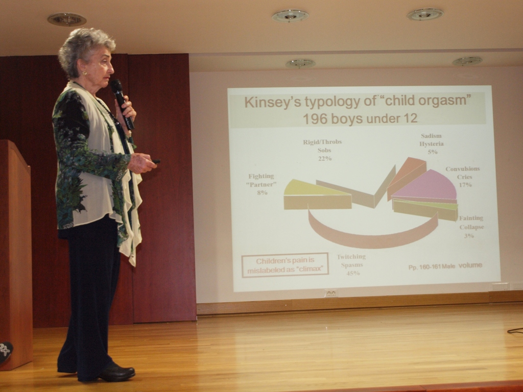 Na pitanje novinarke Ines Grbić, kako je u SAD-u moguće istovremeno uvažavanje stavova dr. Reisman kao suradnice američkog Ministarstva pravosuđa, koje relevantnim smatra i uvažava njen doprinos u rješenju nekih slučajeva, a isto to Ministarstvo ujedno i ne nalaže propitati zakonitost Kinsey instituta čije temelje Reisman dokumentirano pobija; i kako to tolerira tamošnja akademska zajednica, odgovorila je: „Radila sam istraživanje za američko Ministarstvo pravosuđa o nasilju nad djecom po utjecaju američkih pornografskih časopisa. Postoje različite oscilacije korupcije. Radila sam za vrijeme predsjednika Ronalda Reagana. Tada je bilo jako puno novca za to da se pokuša da Kinsey institut prestane s radom i skoro smo to bili učinili. Skoro smo imali o njemu istraživanje 1995. g. u američkom Kongresu i nadam se da ćemo uskoro imati i drugo istraživanje. Kad otkrivamo rad Kinseya, otkriva se sva pozadina o edukaciji o ljudskoj seksualnosti. Otkrivamo milijarde farmaceutskih i drugih interesa uključenih u zadržavanje Kinseyeve baštine i utjecaja. To je veliko. Kopajući po radu Kinseya, potkopava se cijela seksologija, svi ti ljudi i farmaceutska industrija, tvrtke koje s njima surađuju. Potkopava se cijeli temelj seksologije i sve što je proizašlo iz toga. To je veliko. To su milijardski iznosi, ogroman novac“ rekla je Reisman.