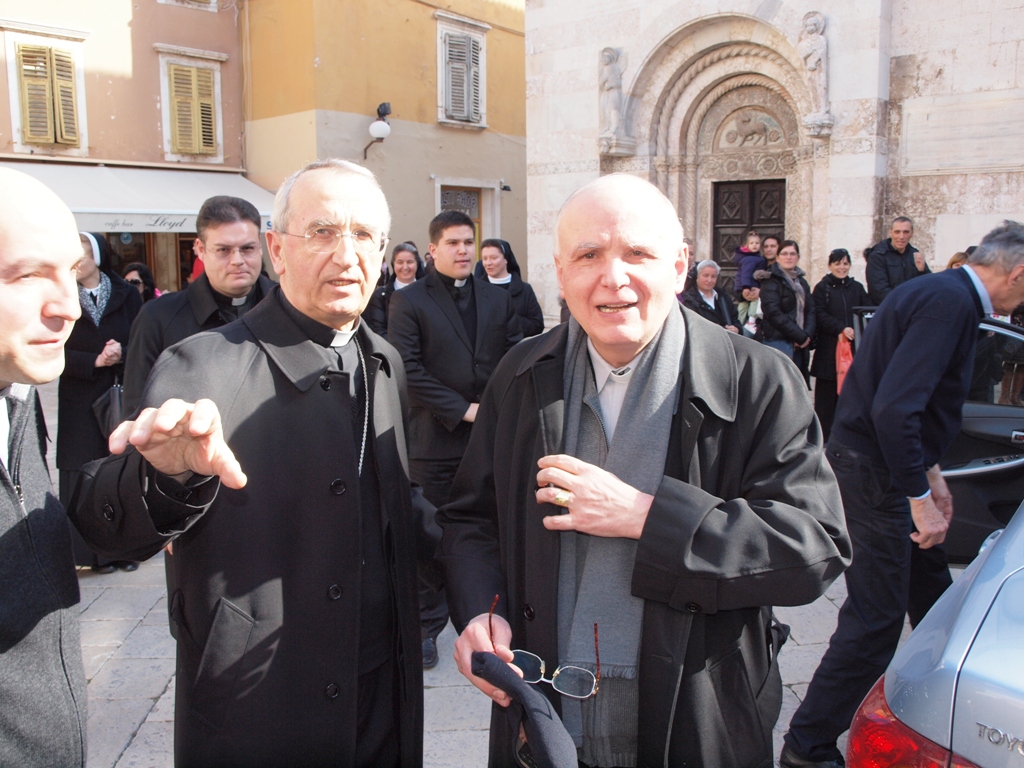 Apostolski nuncij u RH mons. Alessandro D’Errico pohodio je u subotu 16. veljače zadarskog nadbiskupa Želimira Puljića u Nadbiskupskom dvoru u Zadru. U sklopu obilaska hrvatskih biskupija, naime, otkako je imenovan nuncijem u Hrvatskoj, mons. D’Errico je smatrao važnim pohoditi nadbiskupa Puljića, ne samo kao pastira Zadarske Crkve, nego odnedavno i predsjednika HBK. Nuncij je stigao u pratnji svog suradnika u nuncijaturi don Maura Lallija. Nuncija su pred katedralom uz nadbiskupa Puljića dočekali vjeroučitelji Zadarske nadbiskupije, redovnice, katehistice i katehete koji su taj dan u Sjemeništu imali svoj stručni skup. Pridružili su im se i sjemeništarci sa svojim poglavarima, te ministranti iz Benkovca, Korlata, Jasenica, Galovca i Raštana. Na dočeku su bili i svećenici iz Svećeničkog doma, kancelar Zadarske nadbiskupije don Josip Lenkić i katedralni župik don Josip Radojica Pinčić, te vjernici Zadrani koji su se zatekli u blizini katedrale.