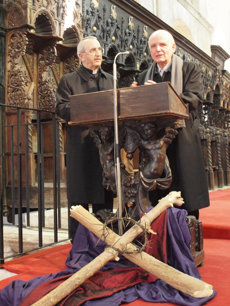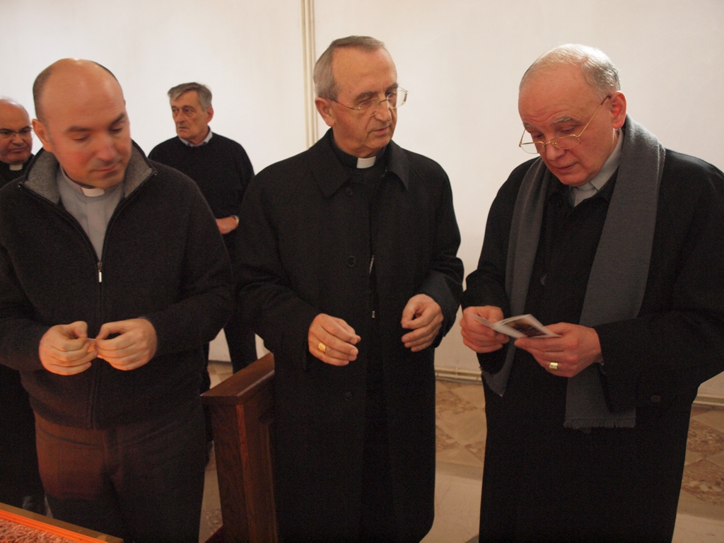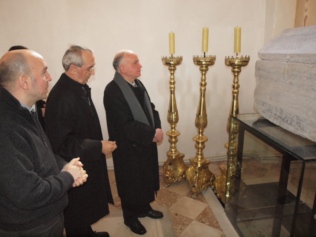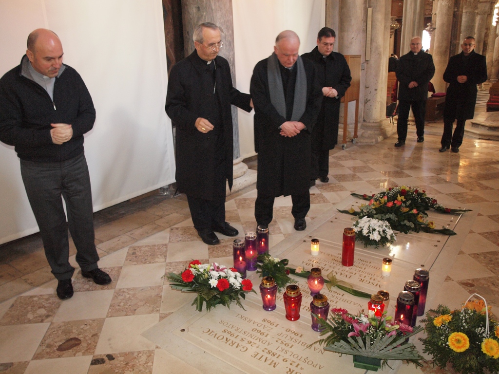 Potom se uputio u sjevernu pokrajnu lađu katedrale, kapelu sv. Stošije, gdje se pomolio kod njenog sarkofaga i na grobu zadarskih nadbiskupa. Zanimao se za prošlost katedrale i izrazio priznanje drevnoj baštini Nadbiskupije od najranijih kršćanskih vremena.