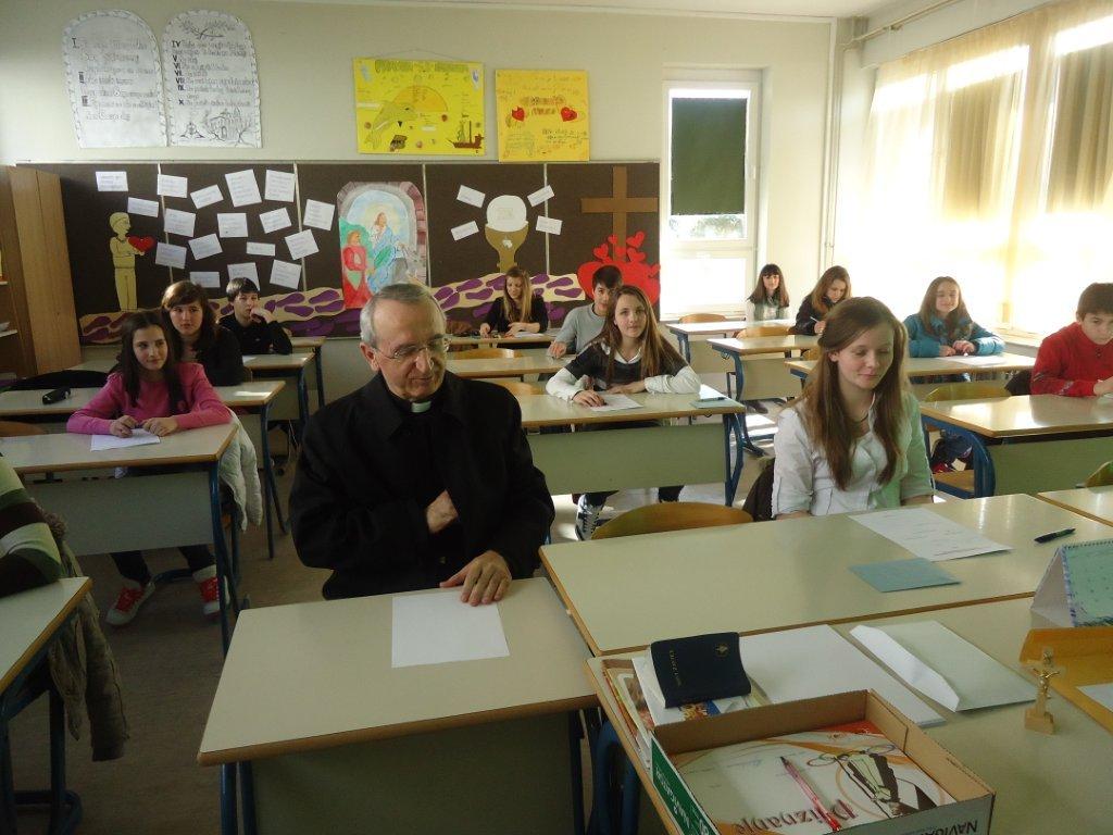 Molitveni početak kod natjecanja srednjoškolaca pripremila je s. Danijela Kovačević s učenicama Medicinske škole, a natjecatelje su prigodno pozdravili ravnatelj Medicinske škole Davor Vidaković i kancelar zadarske nadbiskupije don Josip Lenkić. Prije početka natjecanja, osmoškolce je ohrabrio i uspjeh im poželio zadarski nadbiskup Želimir Puljić, koji je sjeo s vjeroučenicima i u školske klupe.